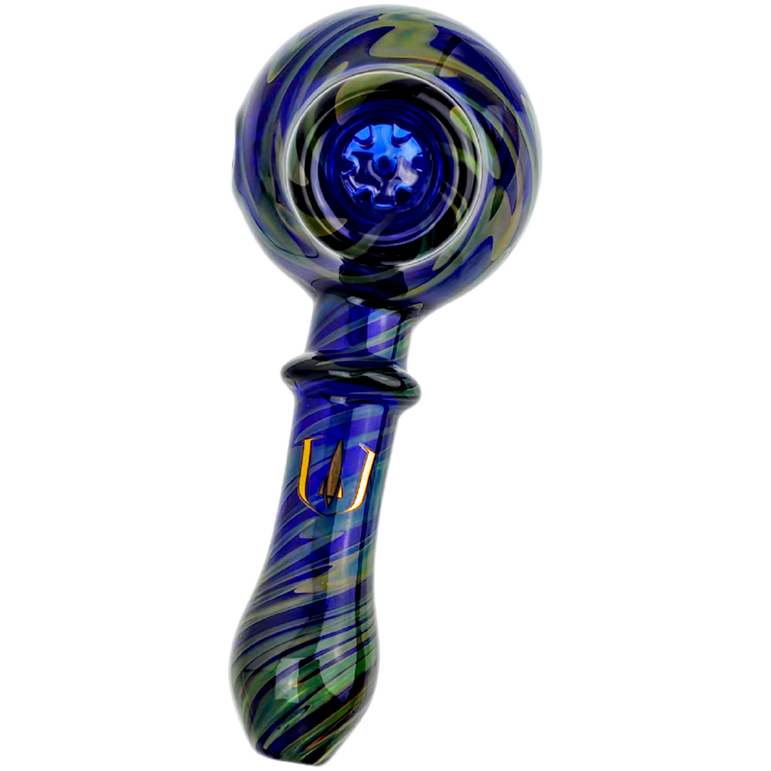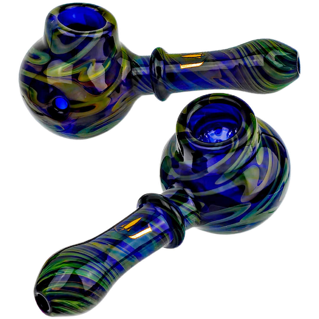4.5″ Stratus Fume Squiggle Over Cobalt Big Bowl Screen Hand Pipe