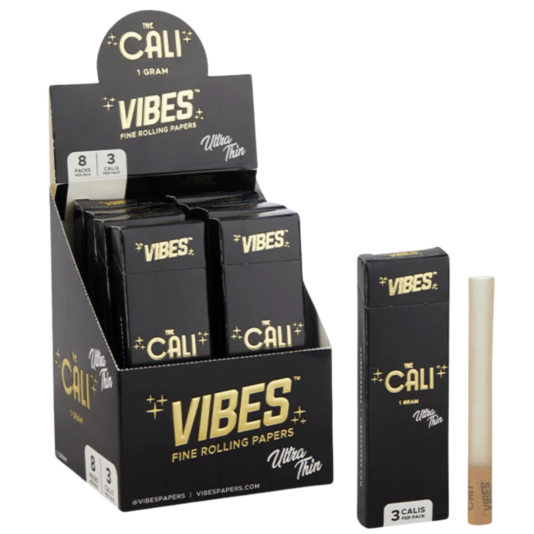 The Cali by VIBES™ 1 Gram Box contains 8 packs with 3 pre-rolls per pack, for a total of 24 Vibes Cali 1 Gram Cones. It’s perfect for anyone who wants a convenient and high-quality smoking experience.
